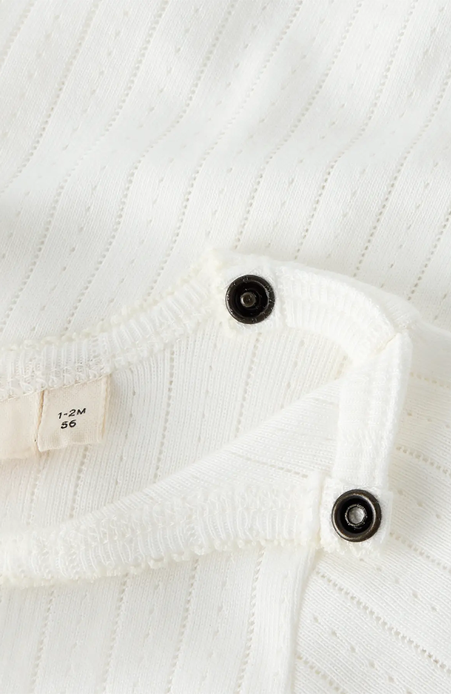 Skapa den perfekta outfiten till ditt barn med kvalitativa vardagsplagg som kombinerar komfort och en trendig stil. Denna body är tillverkad i en mjuk och följsam kvalitet med needle drop-struktur, som kännetecknas av droppade maskor och ger ett unikt mönster med ett lekfullt uttryck.