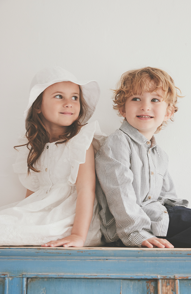 Sommarklänning från HUTTEliHUT med många fina detaljer. Klänningen har genomgående knappar framtill samt foder som gör att den inte blir genomskinlig. Ett vackert broderat blomstermotiv pryder hela klänningen, och volanger vid ärmöppningarna ger ett mjukt och romantiskt uttryck.