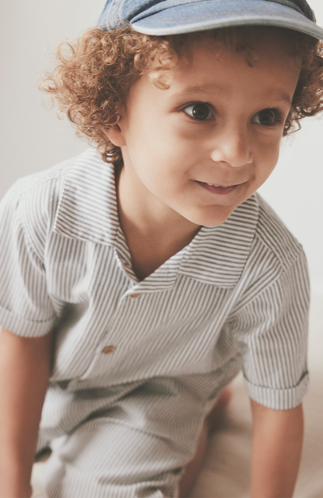 Randig kortärmad skjorta från HUTTEliHUT i en tidlös design. Skjortan har klassisk krage, diskreta uppvik på ärmarna och genomgående knäppning framtill – ett stilrent plagg som passar lika bra till vardag som till sommarens festligare tillfällen.