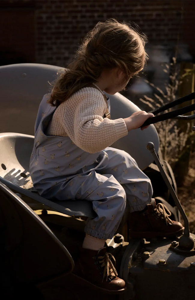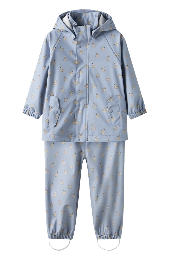 Utforska naturens äventyr i funktionella ytterplagg som håller ditt barn torrt och varmt oavsett väder. Detta regnset är designat för aktiv lek med hög komfort och fullständigt skydd mot regn.