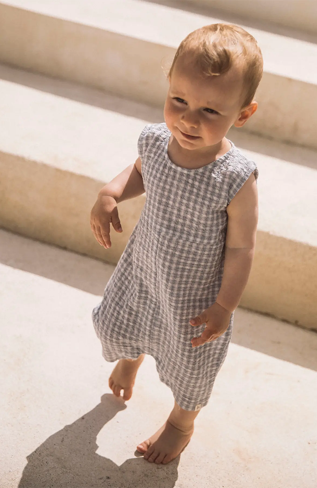 Skapa den perfekta outfiten till ditt barn med kvalitativa vardagsplagg som kombinerar komfort och en trendig, tidlös stil. Denna jumpsuit är tillverkad i ett vävt material med tydligt korsmönster och lätt strukturerad yta som ger ett rent och klassiskt uttryck.