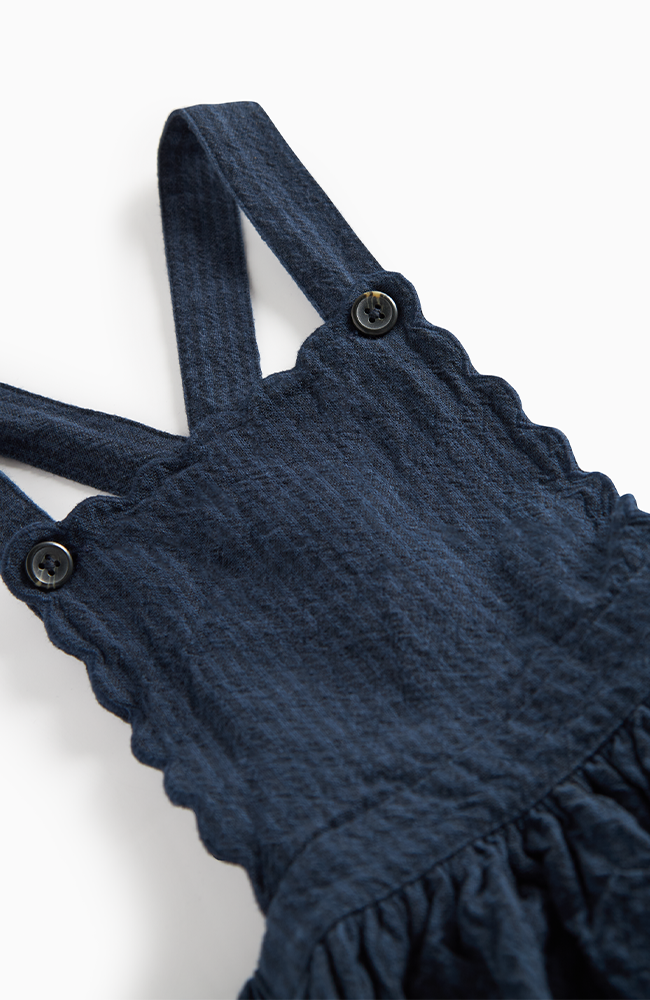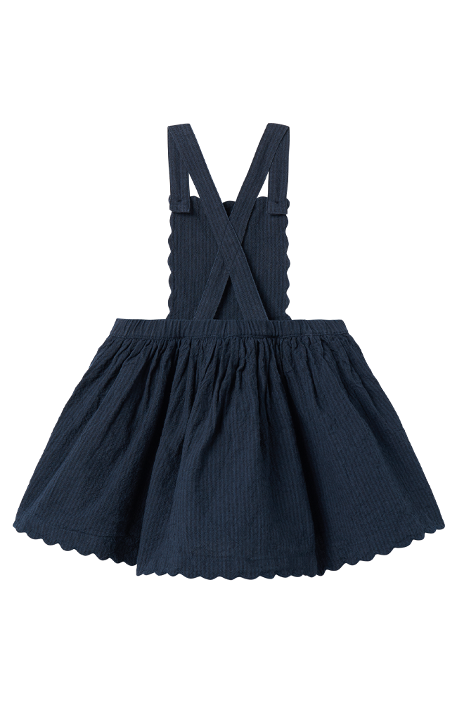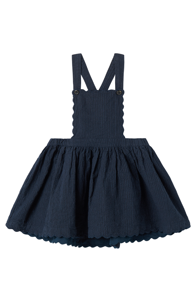 Charmig kortärmad topp i klassisk sjömansstil från MarMar Copenhagen. Tillverkad i 100 % linne – ett lätt och luftigt material perfekt för varma dagar. Toppen pryds av den ikoniska sjömanskragen med broderade marinblå ränder och en liten knytning framtill som ger en stilfull och lekfull detalj.