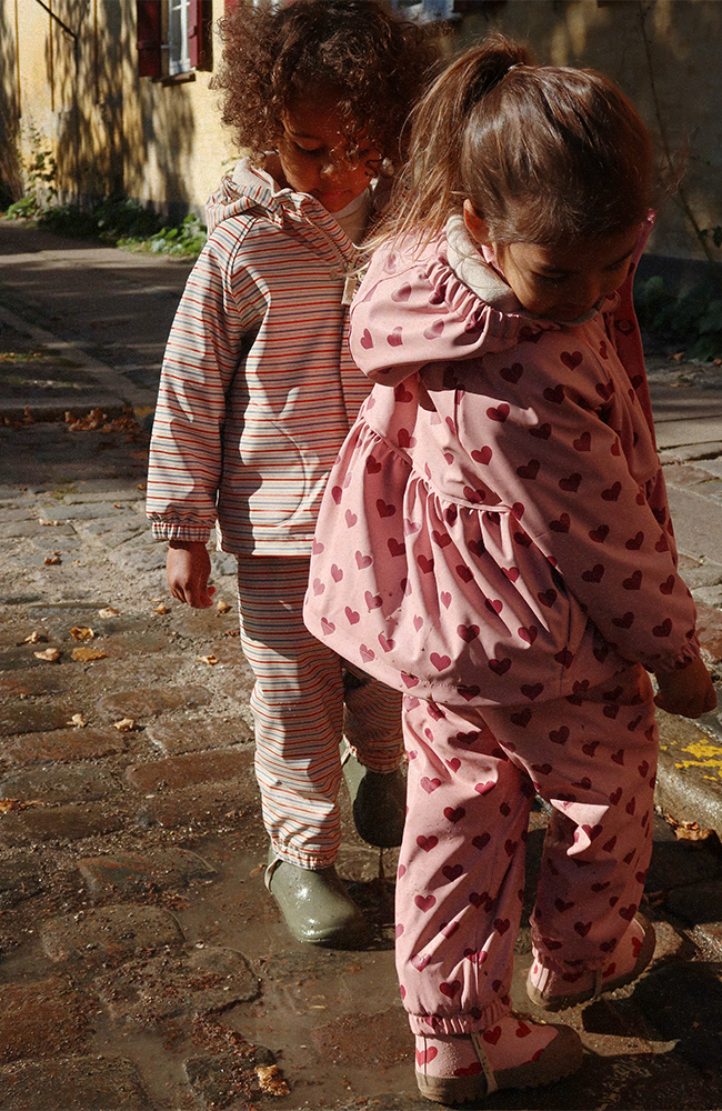 Konges Slöjd's rain clothes are so very nice! Keeps your little ones dry on all rainy days. Konges Slöjd has created super functional rainwear with suspenders and foot straps, so that the suit fits well and keeps them dry.