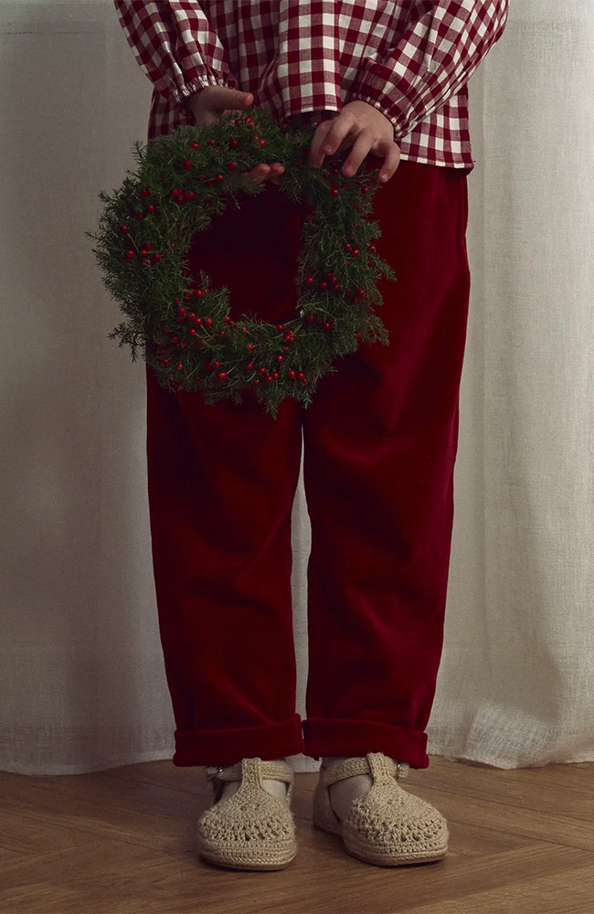 Cotton Knee Socks w/ Side Velvet Bow - Red Velvet