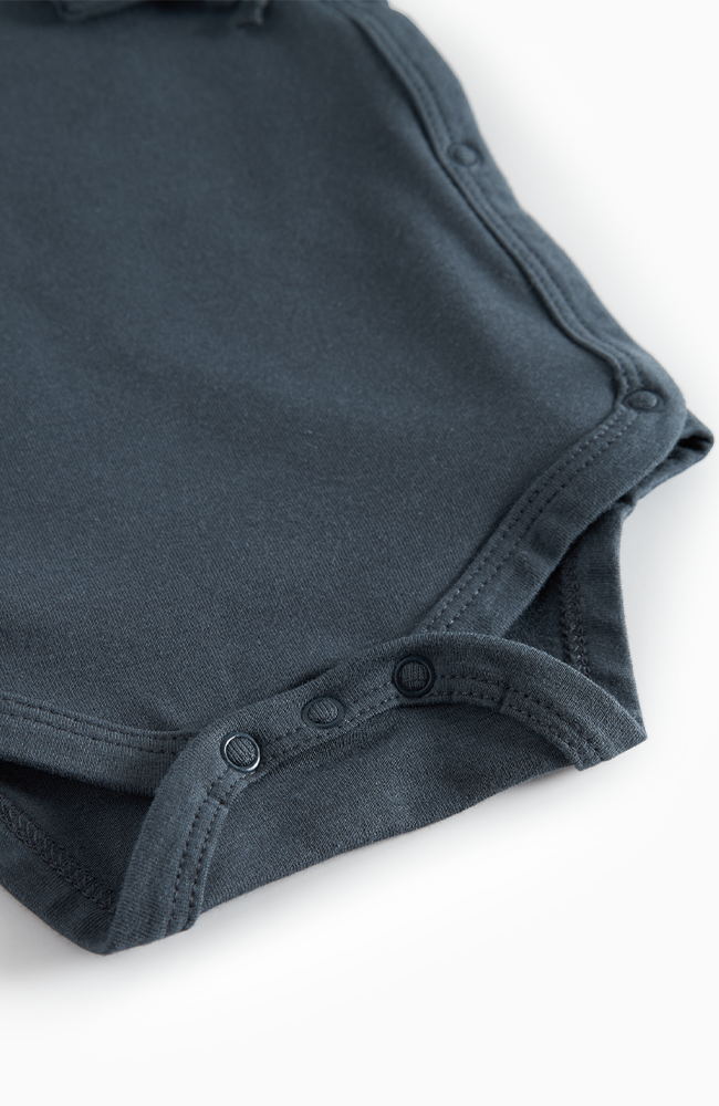 Sweet and airy romper in 100% cotton, perfect for warm summer days. Designed with subtle textured dots, puff sleeves, and a ruffle collar that adds a charming and classic touch. Snap closure at the crotch for easy dressing. A delightful summer favorite for the littlest ones!
