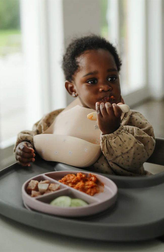 Mushie Silikontallrik med Sugpropp – designad för små självständiga ätare