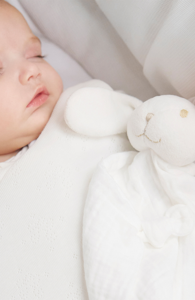 Augustin är en mjuk och elegant snuttefilt i ekologisk bomull, skapad för att trösta, lugna och följa med i de allra första drömmarna. Med sina långa öron att greppa, ett mjukt uttryck och kabelstickad struktur blir Augustin snabbt en trygg liten vän.