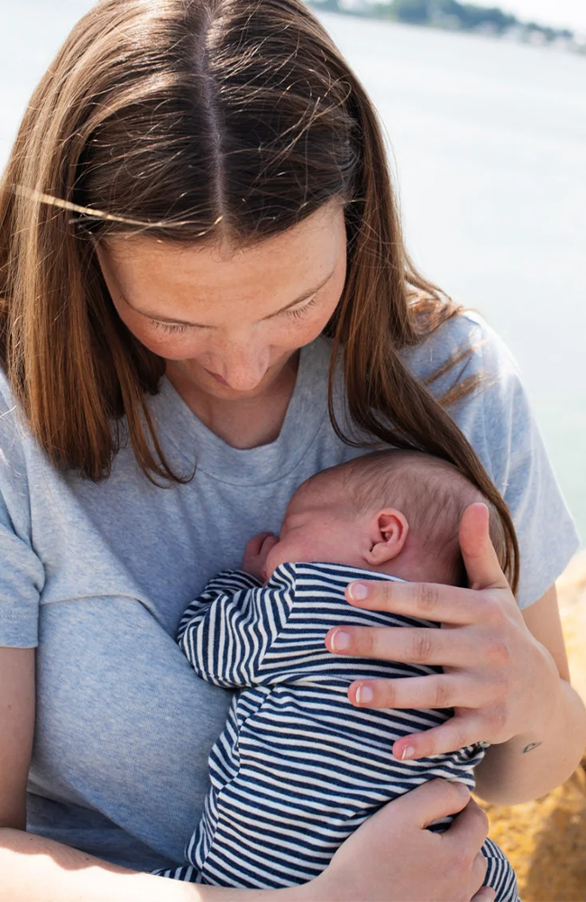 Denna onesie är tillverkad av ren och mjuk ekologisk bomull. Den har långa ärmar och fötter, och öppnas hela vägen från nacke till fötter för enkel påklädning. Tyget är mjukt och melerat i en flexibel ribbstickning. Denna GOTS-certifierade produkt är en hållbar och miljövänlig val för din nyfödda.